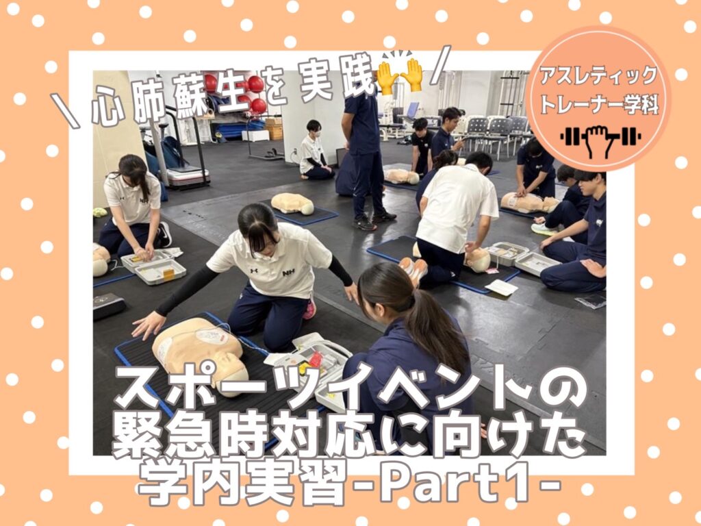 こんにちは!アスレティックトレーナー学科です💪✨今回は、スポーツイベントなどでの緊急時対応に備えて行った学内実習の様子をお届けします!🚑「いざというときに動けるトレーナー」を目指して!スポーツの現場では、いつ・どこで・誰にトラブルが起こるかわかりません。試合中に選手が倒れることもあれば、観客席で体調不良を訴える方が出ることもあります。そのため、アスレティックトレーナーには「選手を支える」だけでなく