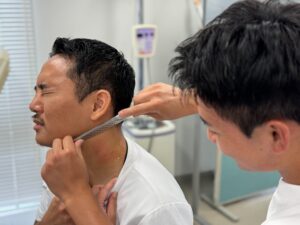 手技(マッサージのような技術)やテーピングを使って、捻挫・打撲・肉離れなどのケガに対応します。