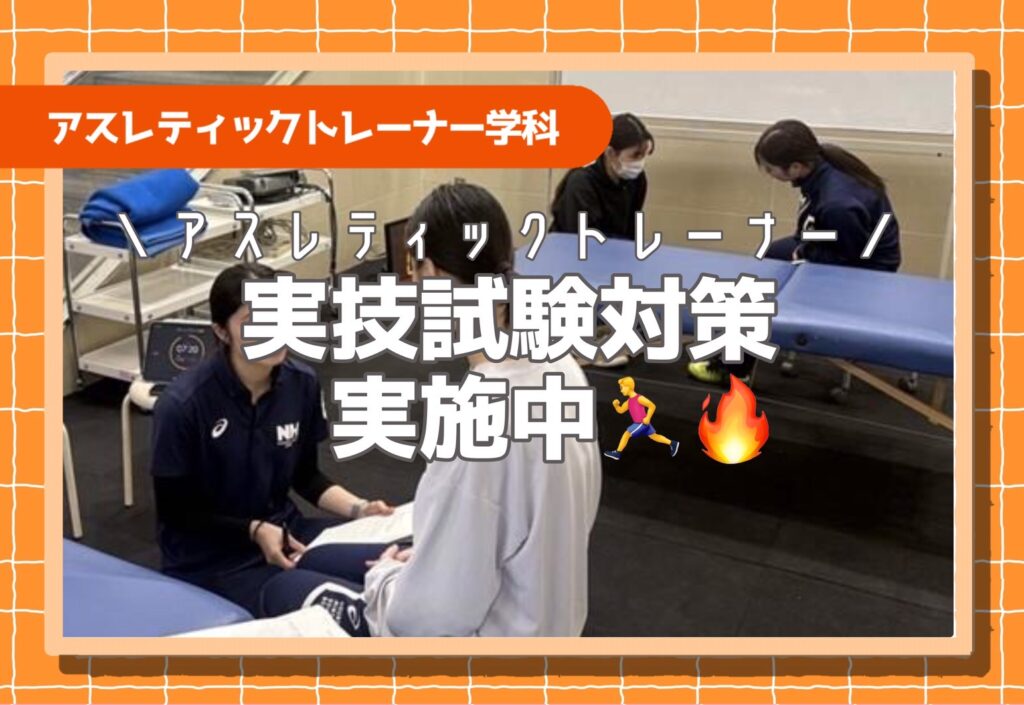 こんにちは!アスレティックトレーナー学科です😊今回は、アスレティックトレーナー実技試験対策の様子をお届けします!📝実技試験は3つのカテゴリー!アスレティックトレーナーの実技試験は、次の3分野に分かれています👇1⃣ 救急処置🆘 2⃣ アスレティックリハビリテーション💪 3⃣ テーピング🤕試験では、✅必要な技能・技術が身についているか✅安全管理ができているか✅競技者と適切なコミュニケーションが取れてい