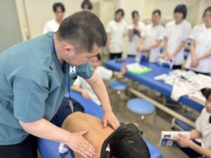 柔道整復師を目指す第一歩!1年生の触察(触診)実技授業に潜入👀✨