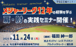【11/24(月)開催 学友会主催セミナー】 MLB12年の現場から学ぶ 肩・肘治療の最前線🌟